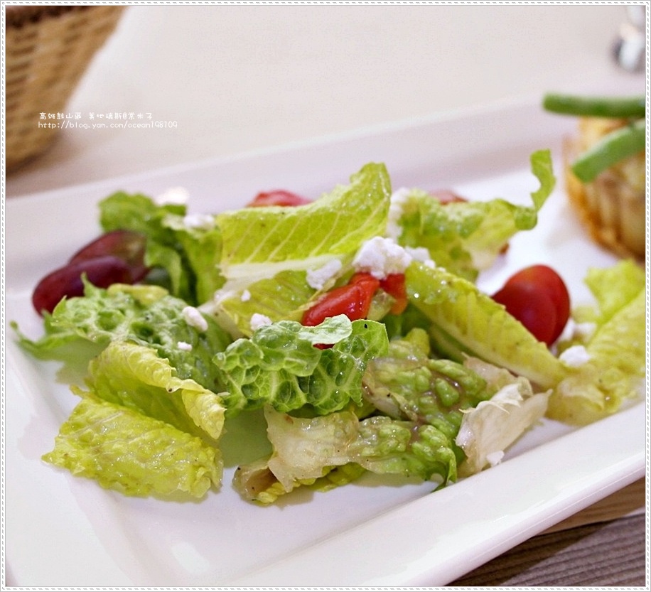 潔白的盤子擺上了新鮮脆口的水果生菜沙拉,