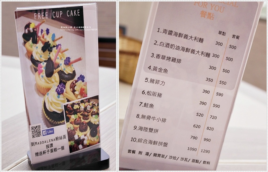 另外現在用餐並到粉絲專頁按讚就可得到店家提供的杯子蛋糕(45元)一個唷!!