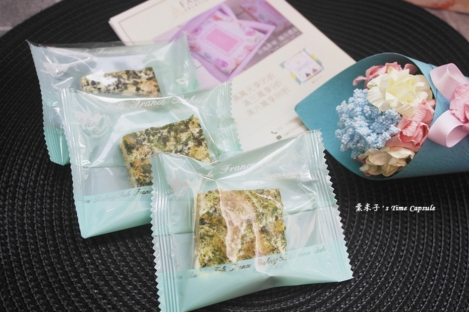 有10入法式焦糖烤片+5入蔓越莓布蕾派+香蒜海苔布蕾派,
